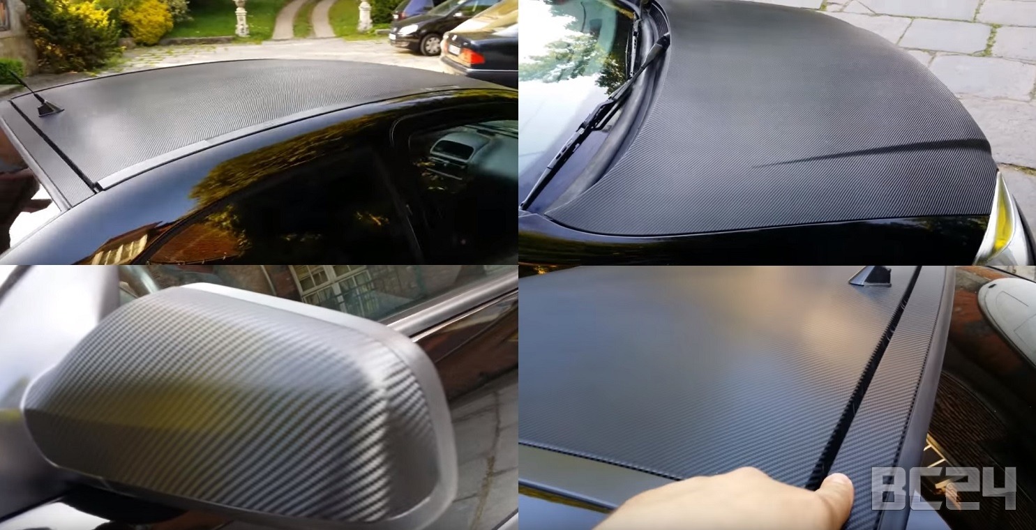 - оклейка карбоном багажника, крыши и капота авто