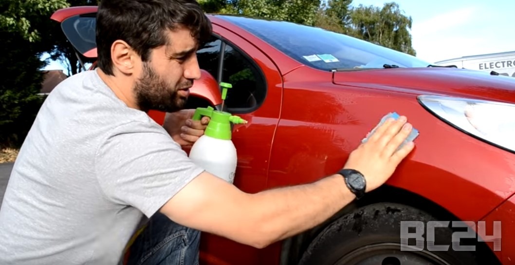 В идеале взять полировочную машину и пройтись вместе с полиролью по всему кузову. Если же машинки нет, то можно пройтись обычной тряпкой и полиролью. Просто это у Вас займет немного больше времени. После полировки обязательно обмыть автомобиль. Совет — шкурте кузов только поступательными движениями вперед-назад, а полировку уже выполняйте круговыми движениями. Это азы полировки кузова.