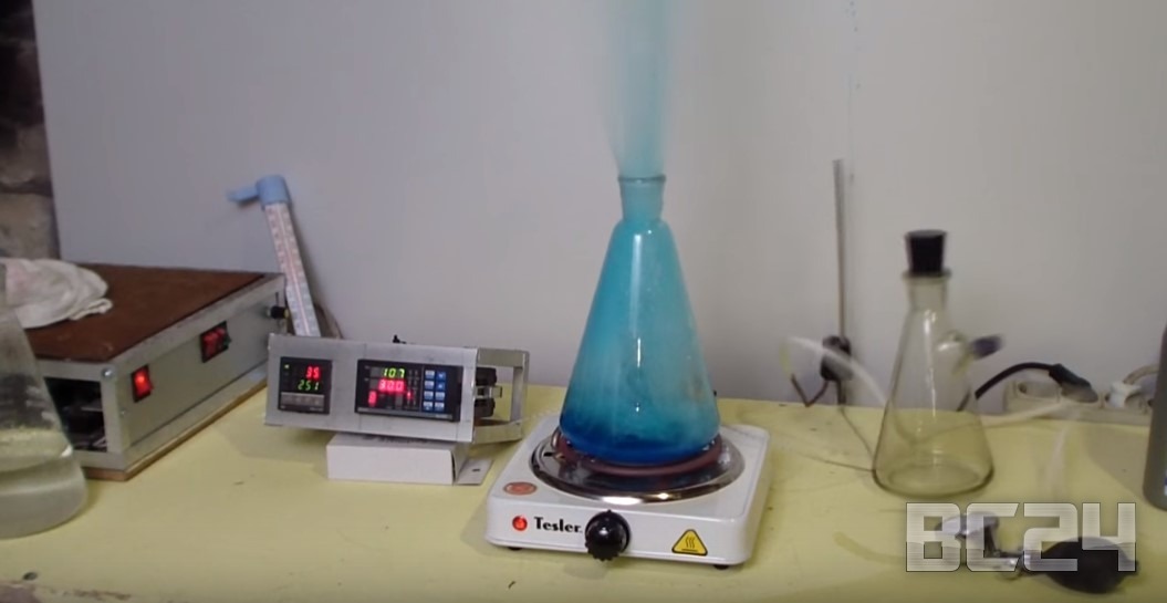Для точности эксперимента мы нагреем в нашей колбе сначала воду до 100 градусов.